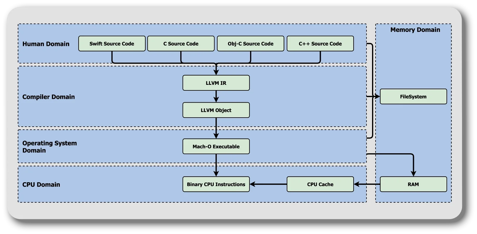 The diagram below represents a simplified overview of the numerous transformations your Swift Code will go through.