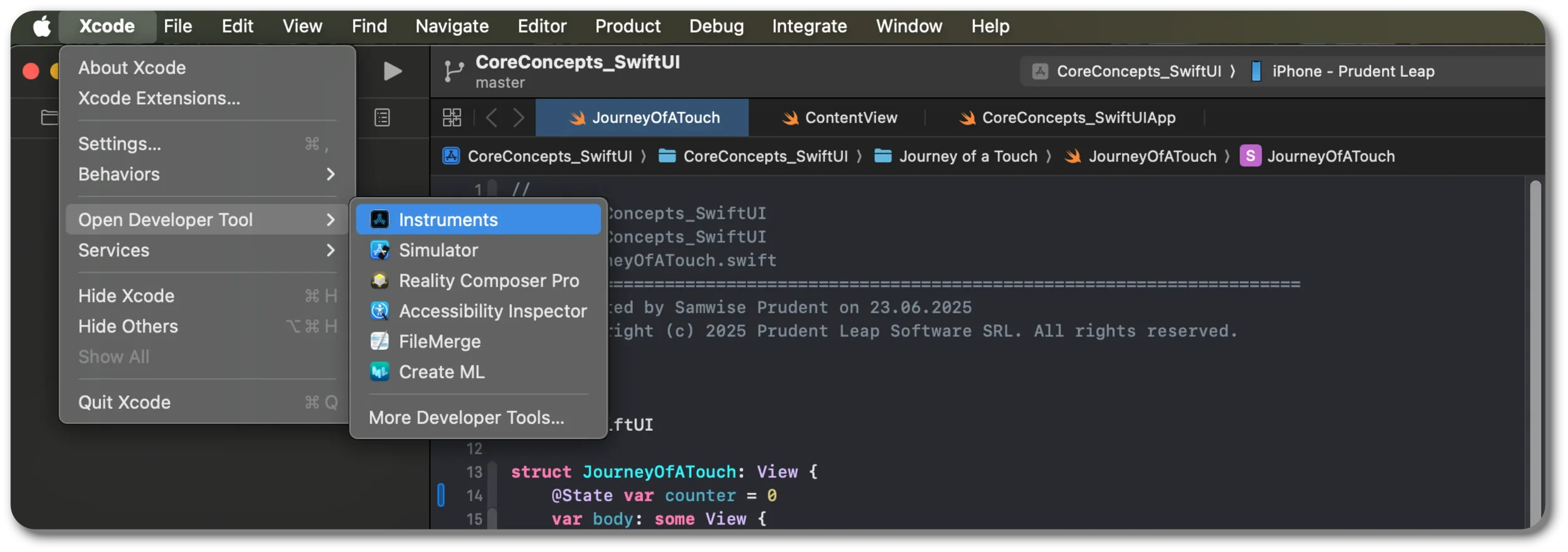 To get started, in an Xcode project, go to Xcode -> Open Developer Tool -> Instruments. Then, select Logging as the initial instrument. You can add multiple other instruments. In fact, you can select a different set of instruments for each recording, to make the process easier to follow.